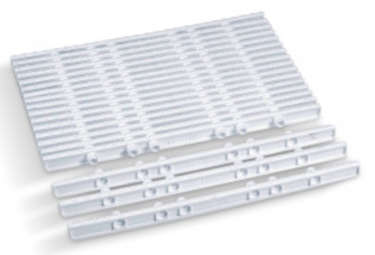 Varilla plásticas de polipropileno con elastómetro de primera calidad, de 50 cm. de largo. Su ensamblado de forma modular permite el desarrollo de una línea de rejillas, la cual destaca por ser antideslizante y agradable a la pisada. Su principal característica radica en su flexibilidad de montaje y en su gran diversidad de usos.