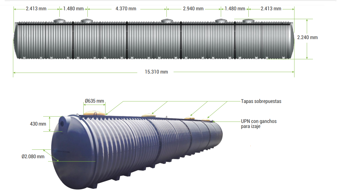 | Ficha Técnica de ESTANQUE DE AGUA HORIZONTAL TITAN PARA ENTERRAR 50.000 LITROS | Descargar Archivo | ||
